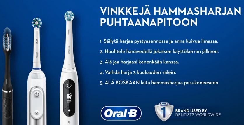 Hammasharja suositellaan vaihdettavan 3 kuukauden välein. Osta siis vaihtoharjat nyt samalla hammasharjan kanssa. Tarjolla on useita erilaisia harjoja esim. lapsille tai vaikka ikenille mahdollisimman hellävaraisia. Muista myös pitää harjastasi hyvää huolta. Säilytä harjaa pystyasennossa ja anna sen kuivua. Huuhtele harja huolellisesti hanavedellä jokaisen käyttökerran jälkeen. Älä jaa harjaasi koskaan kenenkään kanssa.