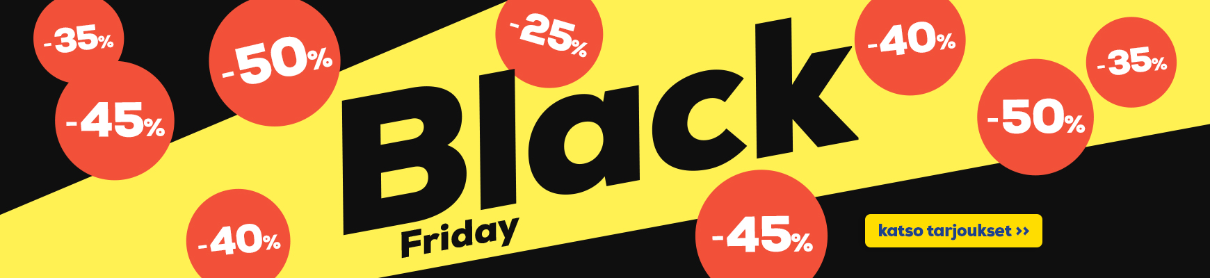 Black Friday -tarjouksemme ovat saatavilla rajoitetun ajan marraskuussa. Suosittelemme seuraamaan tarjouksia aktiivisesti, sillä suosituimmat tuotteet voivat loppua nopeasti.