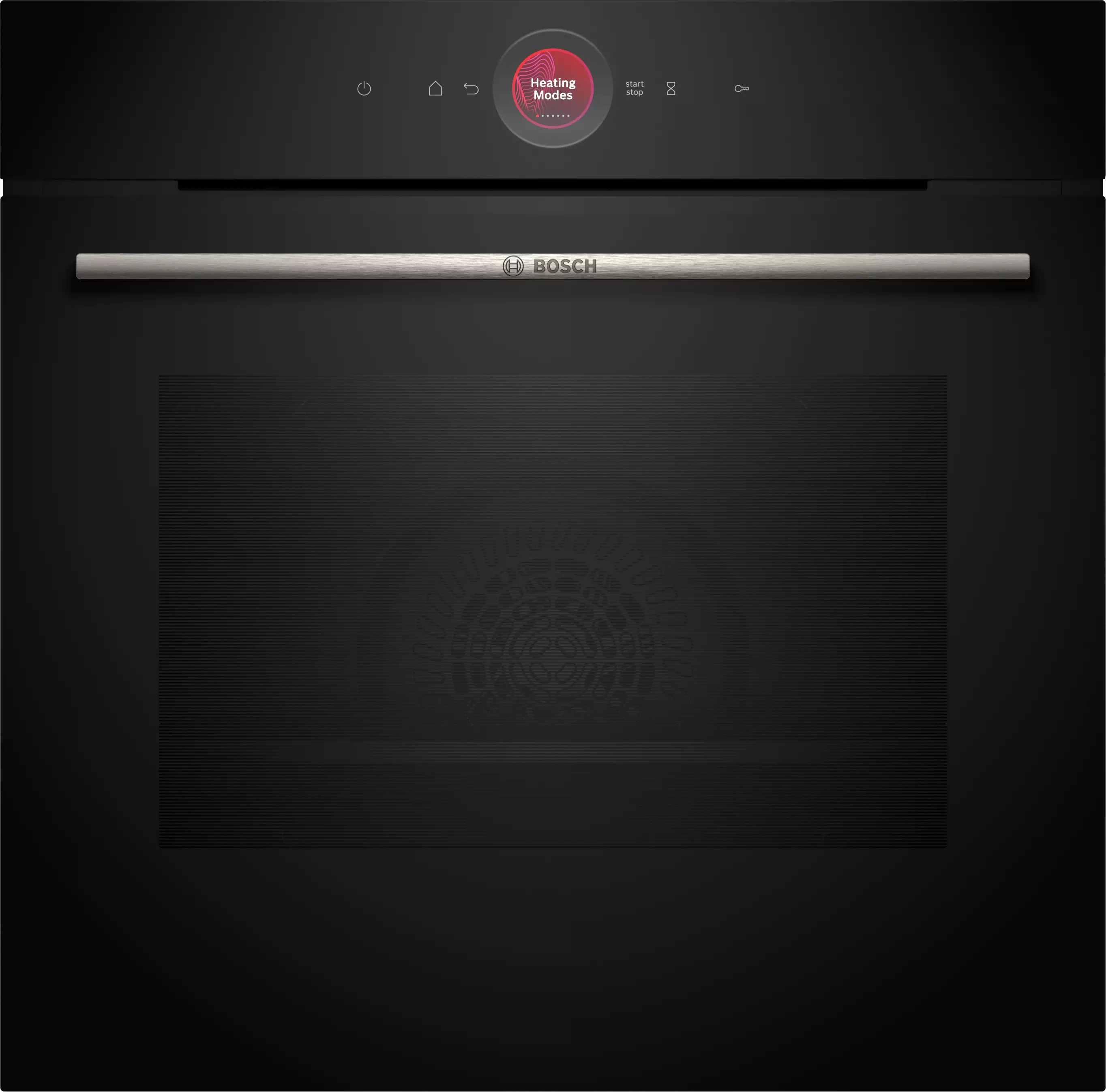 Uuni, jossa on digitaalinen ohjausrengas ja TFT-kosketusnäyttö, monipuoliset toiminnot, kuten Assist-avustin aterioiden valmistamiseen, Air Fry sekä paistolämpömittari. Etäohjaa ja seuraa uunisi toimintoja liittämällä se Home Connect -sovellukseen.