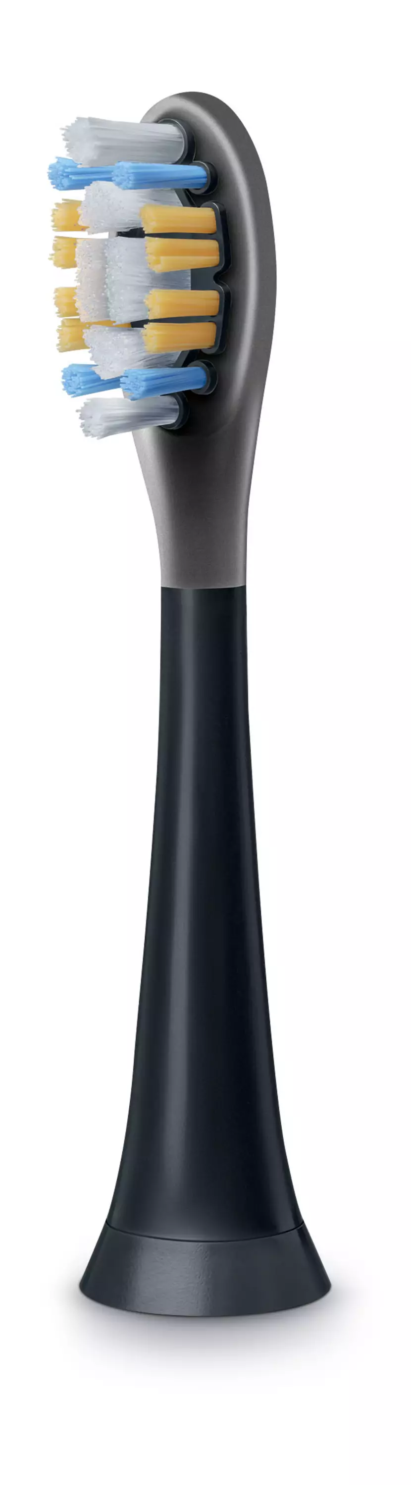 This replacement set includes 4 black Plaque Eraser brush heads with medium-hard bristles for deep cleaning your teeth.