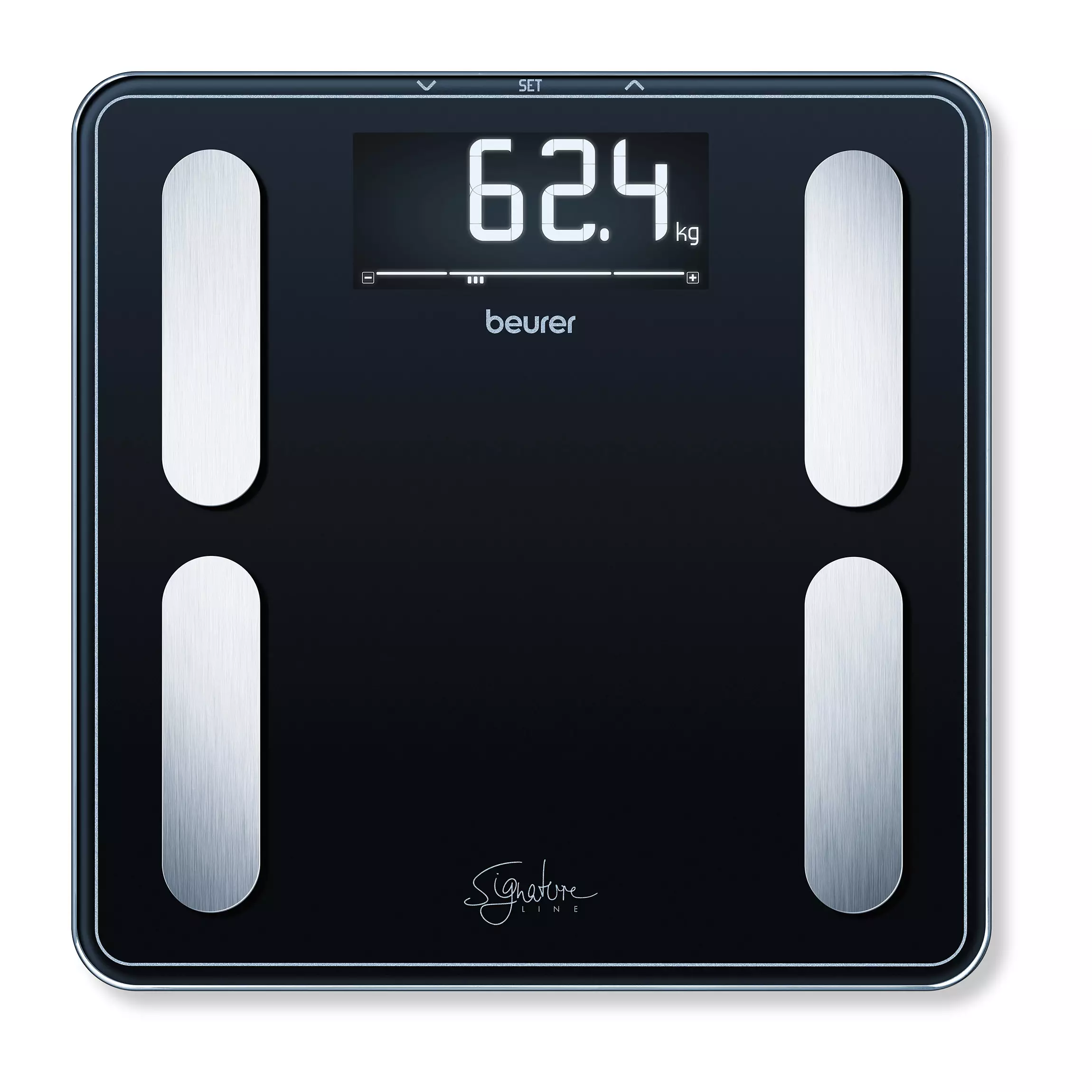 BF 400 -diagnostiikkavaa’an avulla voit seurata arvojasi aina! Nykyaikaisella SignatureLine-muotoilulla oleva diagnostinen kylpyhuoneen vaaka ei ainoastaan laske kaikkia tärkeitä mitattuja arvoja, vaan myös tulkitsee ne puolestasi.