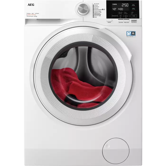 Kuivaava pesukone 7000 ProSteam® on 3 in 1 kone, joka helpottaa pyykinpesua, pesu --, kuivaus ja höyryohjelmilla. Höyryohjelma käyttää 96 % vähemmän vettä* ja on hellävaraisempi kuin pesu, ja vaatteet pysyvät uuden näköisinä pidempään