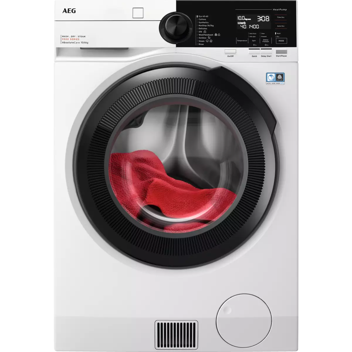 AEG kuivaava pesukone 9000 AbsoluteCare® kuivaa lämpöpumpputekniikan avulla vaatteet puolet alhaisemmasta lämpötilasta*. Tarkat rummun liikkeet pesevät ja kuivaavat villan,ja varmistaa että herkimmätkin materiaalit säilyttää muotonsa.