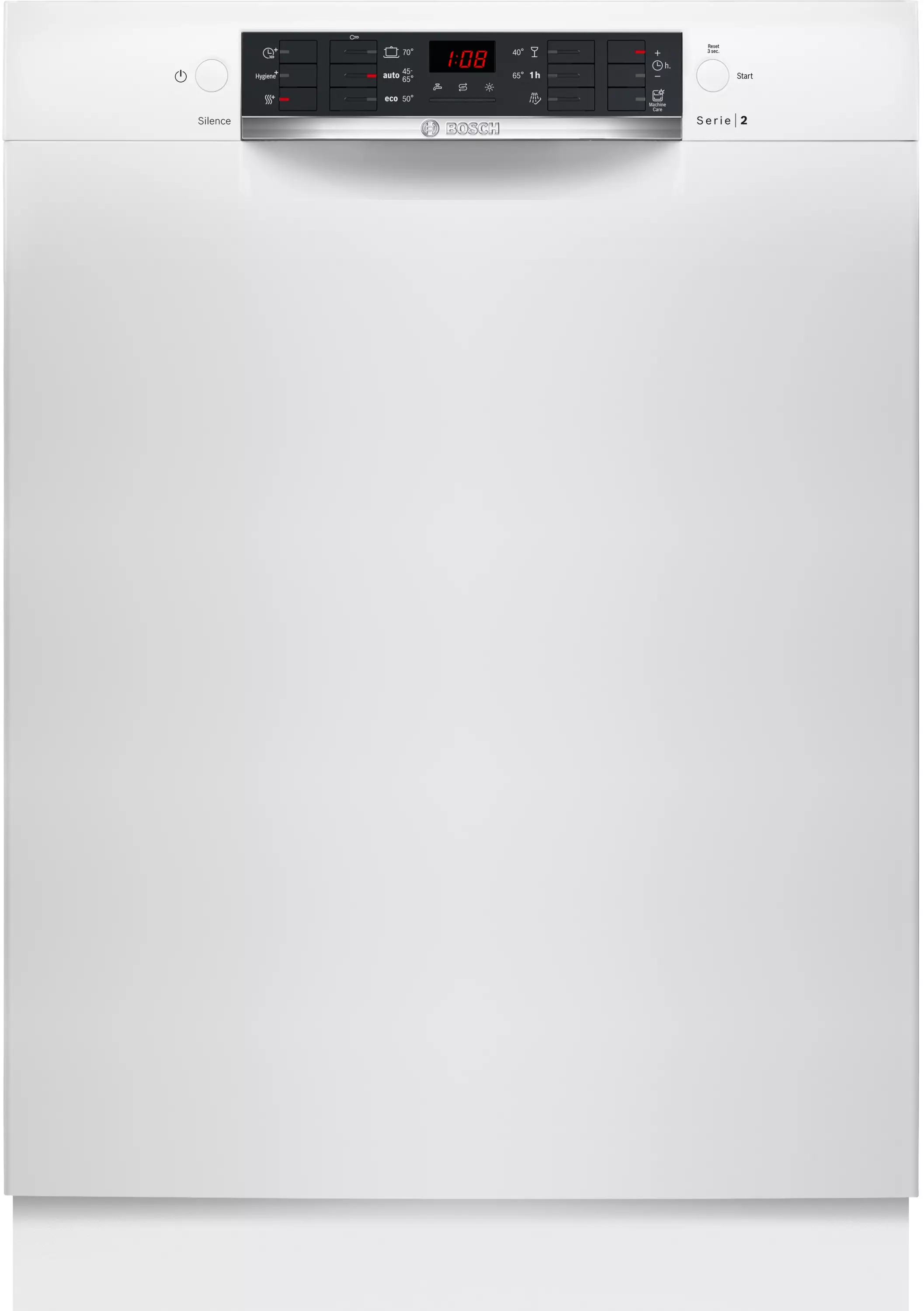 Tuo arkeen helppoutta ja puhtautta Bosch SMU26AW11S -astianpesukoneella. Serie 2 -malliston 60 cm työtason alle sijoitettava kone yhdistää tehokkaan pesun, joustavan tilankäytön ja älykkään kuivaustekniikan tyylikkäässä valkoisessa ulkokuoressa.