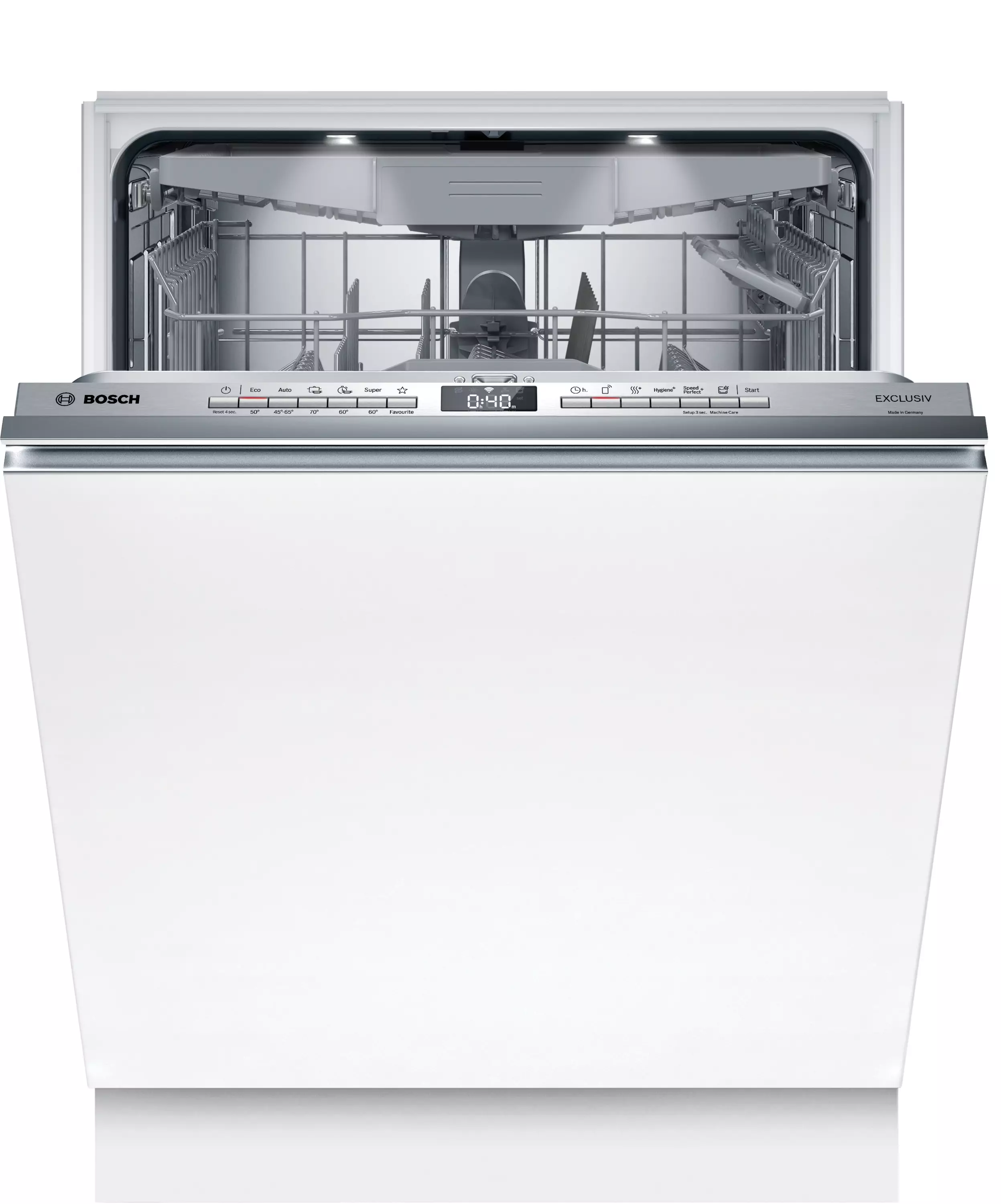 Kun hygienia on tärkeää, Bosch ei tingi mistään. Eco 50 °C -ohjelma on sertifioitu poistamaan viruksia tason 1 mukaisesti, ja Intensive 70 °C sekä Machine Care -ohjelmat nousevat vielä korkeammalle hygienialuokitukseen. Tämä on erityisen arvokasta lapsiperheissä, allergiatalouksissa ja kaikille, jotka haluavat astioiden olevan aidosti puhtaita.