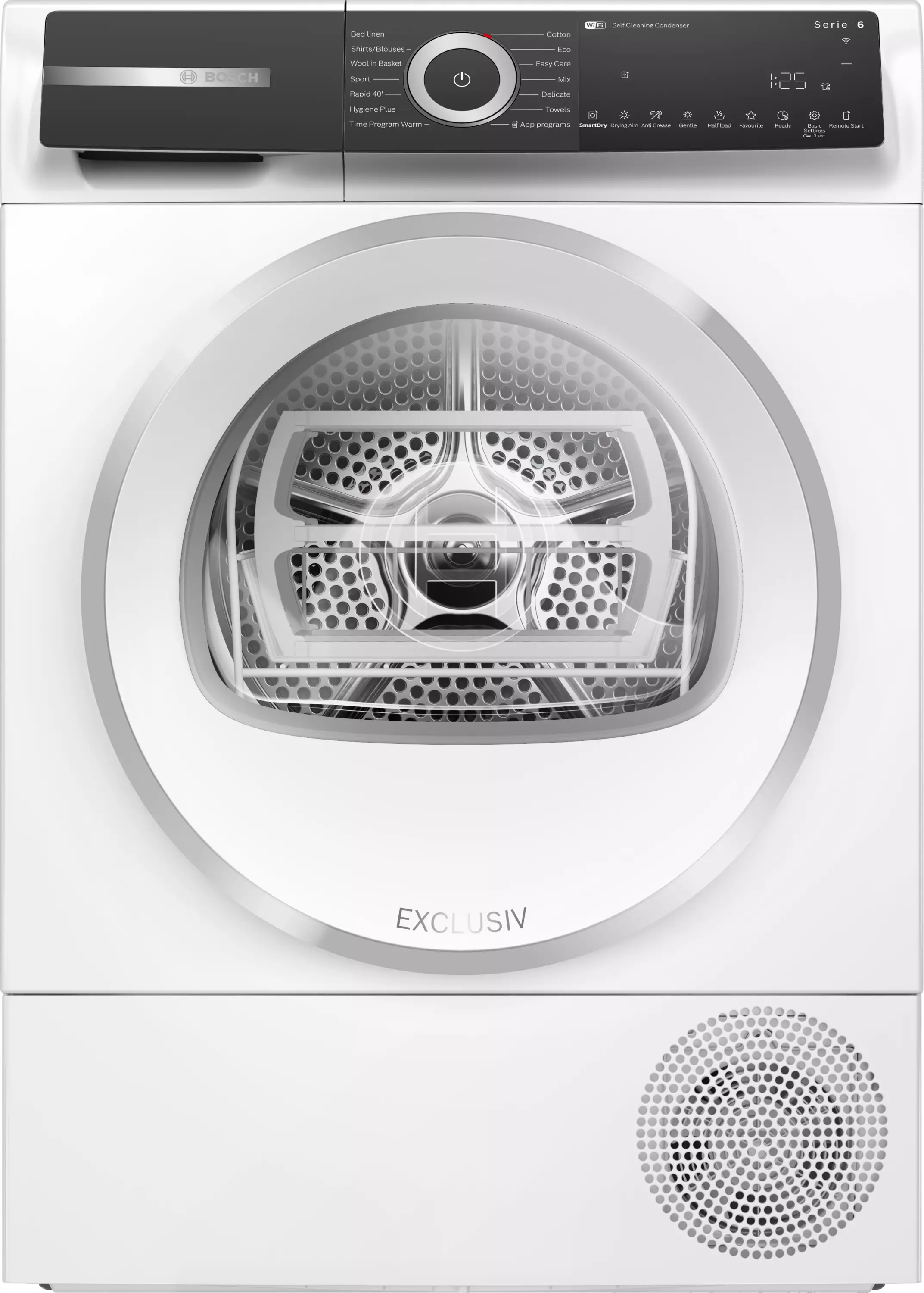 Kuivaa jopa 9 kg pyykkiä yhdellä kertaa hellävaraisesti ja energiatehokkaasti, säästäen aikaa ja rahaa. Tämä Serie 6 -sarjan valkoinen kuivausrumpu yhdistää nykyaikaisen teknologian ja älykkäät toiminnot, jotta pyykkisi on täydellisen kuivaa ja valmiina käyttöön joka kerta.