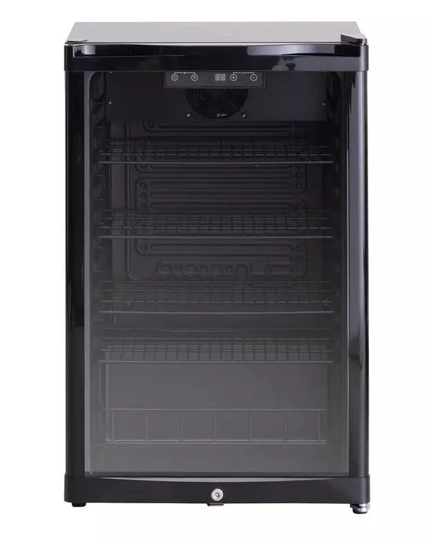 54cm leveä tyylikäs musta lasiovellinen jääkaappi. Laitteessa lukittava ovi integroidulla kahvalla. Sisävalo. Oven kätisyys vaihdettavissa. Energialuokka E.