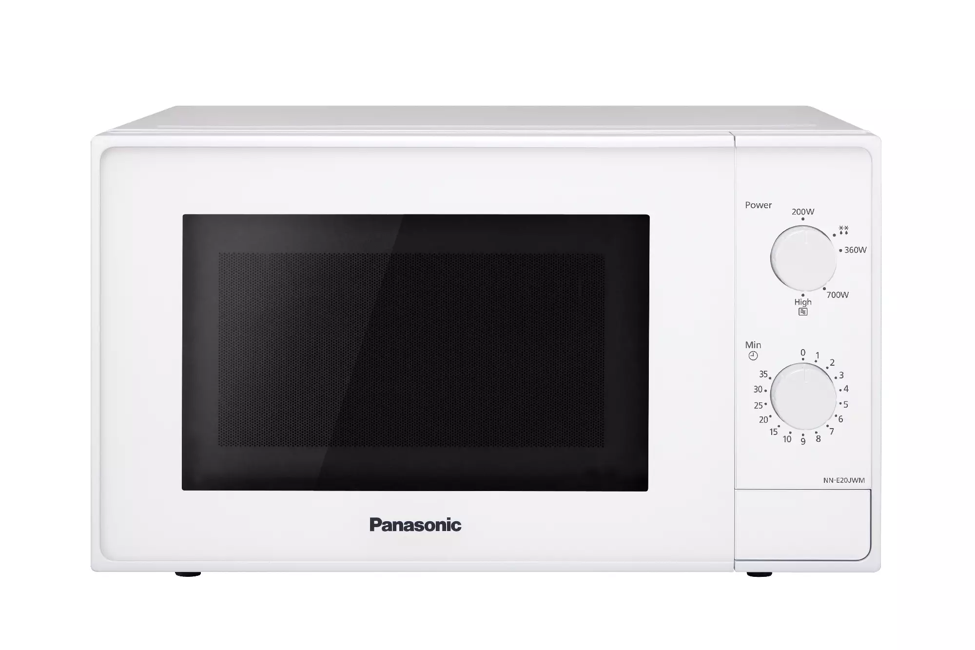 Panasonic NN-E20JWMEPG on pienikokoinen laadukas mikroaaltouuni 800W teholla ja viidellä esiasetuksella. Manuaalinen malli ilman digitaalista näyttöä, joka on helppo käyttää.
