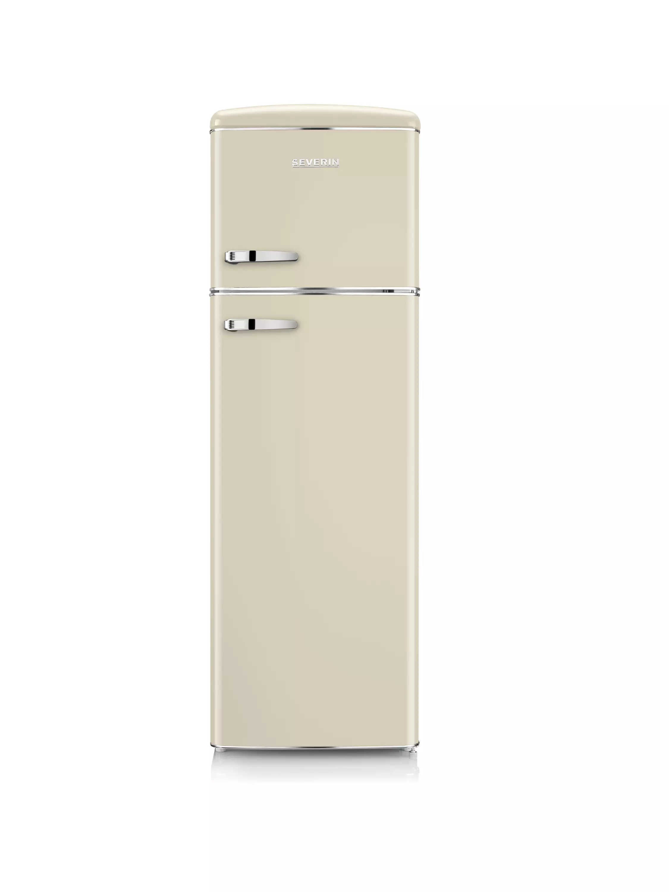 Severin RGK8985 – tämä kerman värinen, retrohenkinen jääkaappi-pakastin, jossa on krominvärinen kahva, varastaa huomion jokaisessa kodissa.