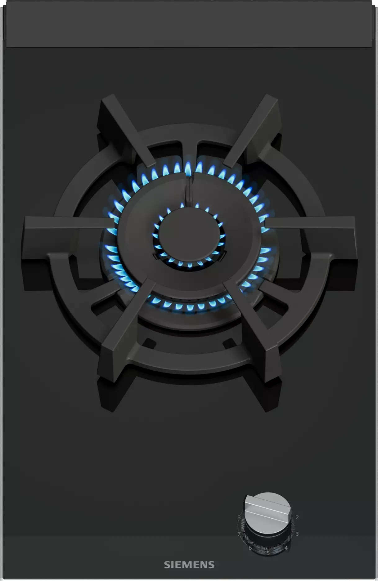 Design lasikeraaminen pinta, Musta comfortDesign, harjattu alumiini Valurautainen kattilankannatin, kumijalat Metalliset valitsimet Erityisen matala polttimodesign: elegantti muotoilu, ilman pieniä osia. Käyttömukavuus stepFlame: valitse haluamasi liekin koko. Yhdeksän tarkasti etukäteen määriteltyä tehoasoa. väännettävät valitsimet, Edessä: käytännölliset säätönupit tason etureunassa. Sytytys yhdellä kädellä: paina ja käännä valitsinta sytyttääksesi halutun polttimon.