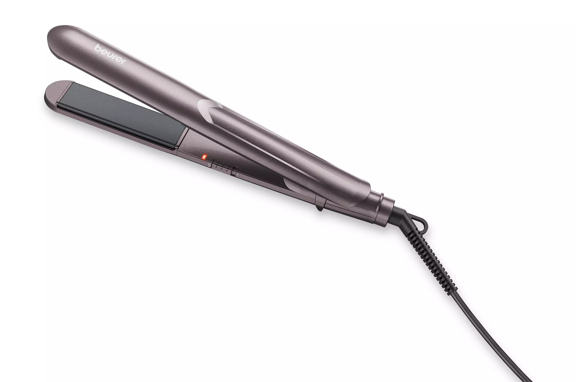 - Ripustussilmukka helpottaa säilytystä varten, pitäen suoristajan käden ulottuvilla ja järjestyksessä.