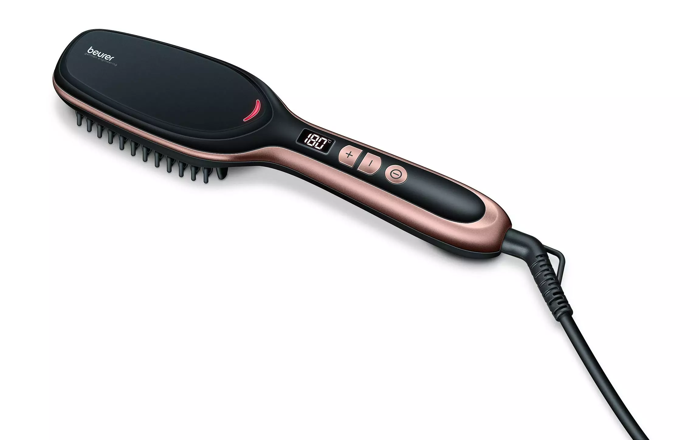 - Käytännöllinen ripustuskoukku: Helpottaa säilytystä ja pitää suoristusharjan kätevästi ulottuvilla.