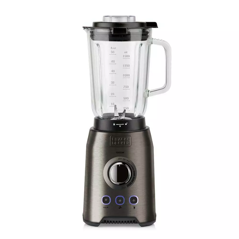 Black+Deckerin tehosekoittimessa, 1200 W on 3 tilaa: Ice, Smoothie & Turbo, 1,5 litran lasikannu ja liukumattomat jalat - Tee kaikenlaisia pirtelöitä, smoothieita, keittoja ja juomia sekunneissa.