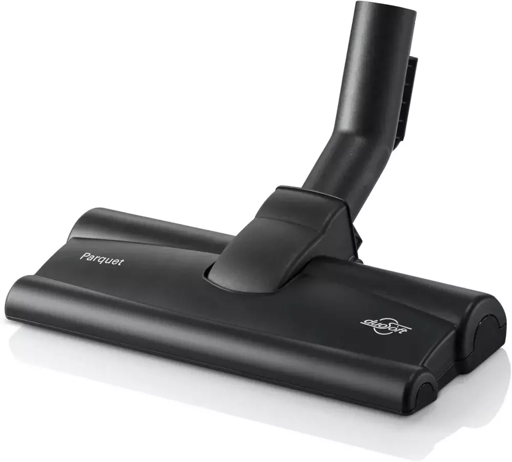 - Pyörivillä harjaksilla varustettu hellävarainen suulake on suunniteltu helposti naarmuuntuville lattiapinnoille.
