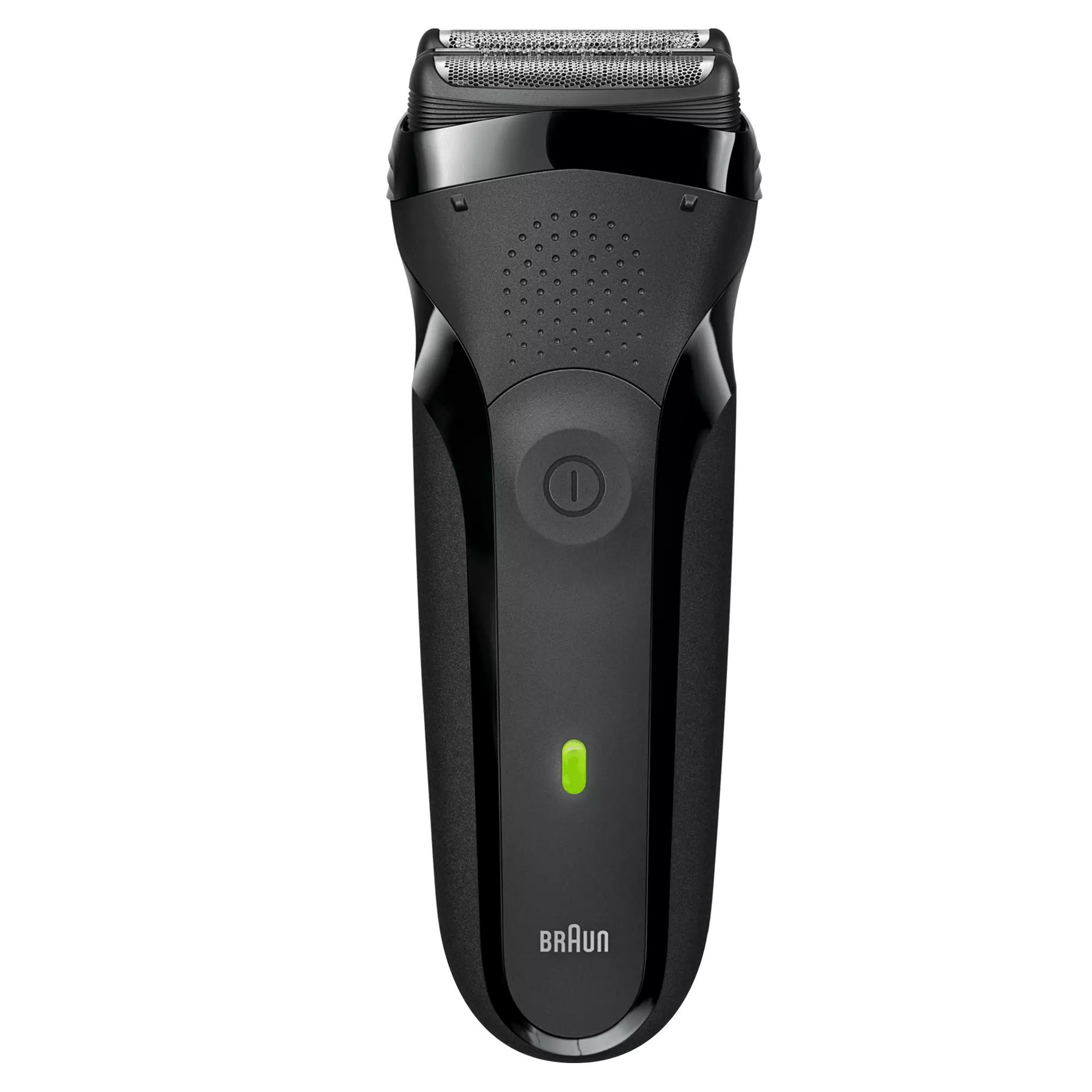 BRAUN PARRANAJOKONE 300s SERIES-3 Kolminkertainen ajotoiminto -Kolme erikseen jousitettua terää myötäilevät kasvojen muotoja ja leikkaavat sekä pitkät että lyhyet partakarvat jokaisella vedolla. Tyylikäs muotoilu pitävällä kädensijalla.