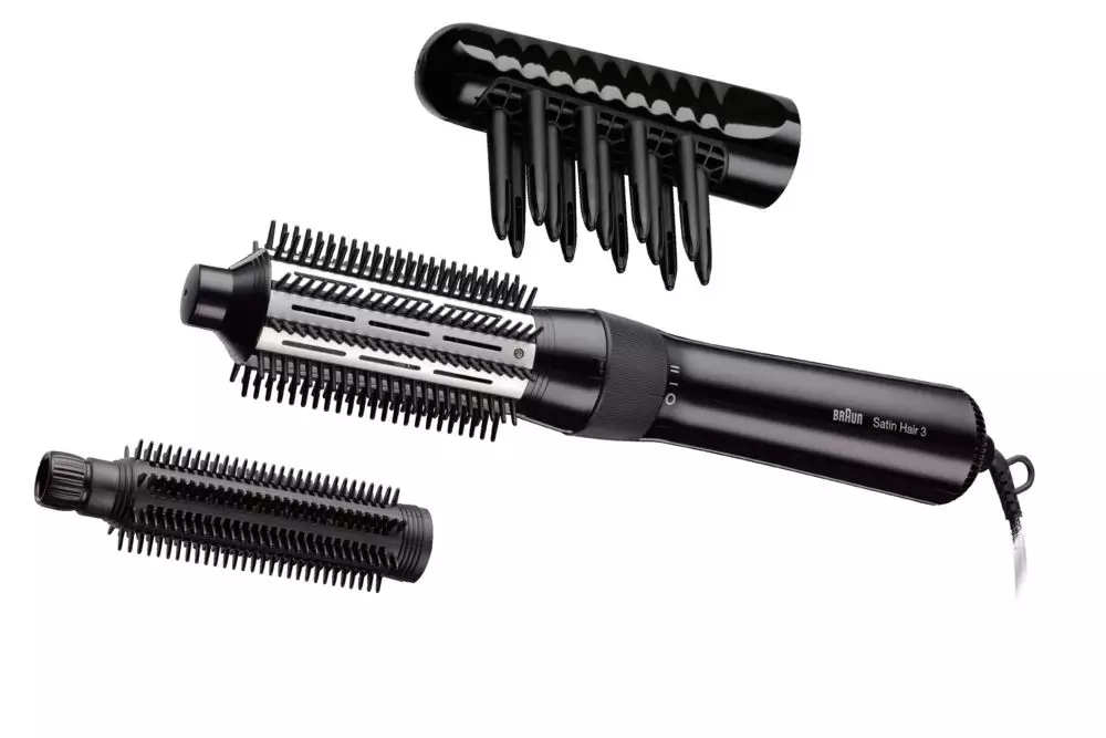 BRAUN ILMAKIHARRIN AS330 SATIN HAIR 3 AIRSTYLER 400 W HIUSTENMUOTOILIJA. Mukana pieni harja (18mm) ja isompi (38mm) keraaminen harjasosa sekä tuuheutta tuova volyymiosa. 2 puhallusvoimakkuutta ja 2 lämpötila-asetusta, autom. kiharan vapautin