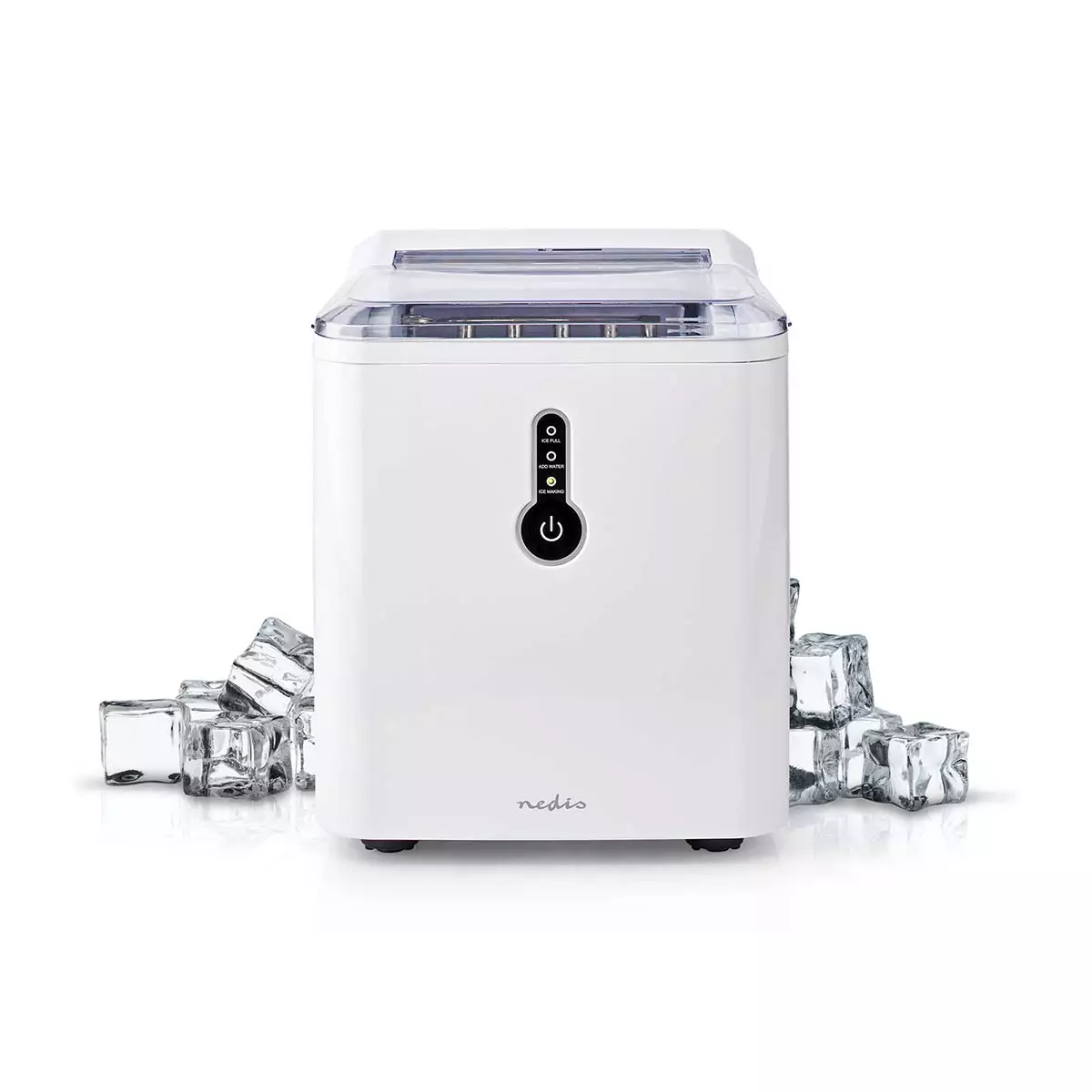 Nedis-jääpalakone on pienikokoinen mutta suurella 1,5 litran vesisäiliöllä varustettu laite, jolla voit tehdä jääkuutioita kylmiä juomia varten milloin ja missä vain.