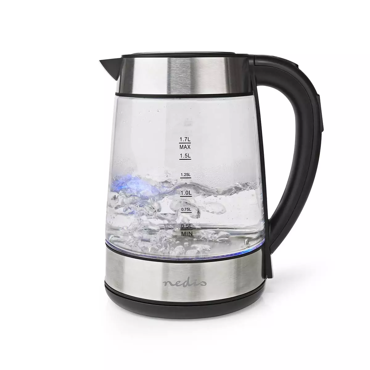 Tämä Nedis-vedenkeitin vakuuttaa sekä tyylillään että tehokkuudellaan. Sen tilavuus on 1,7 litraa. 2 200 watin tehon ansiosta teevesi on valmista hetkessä.