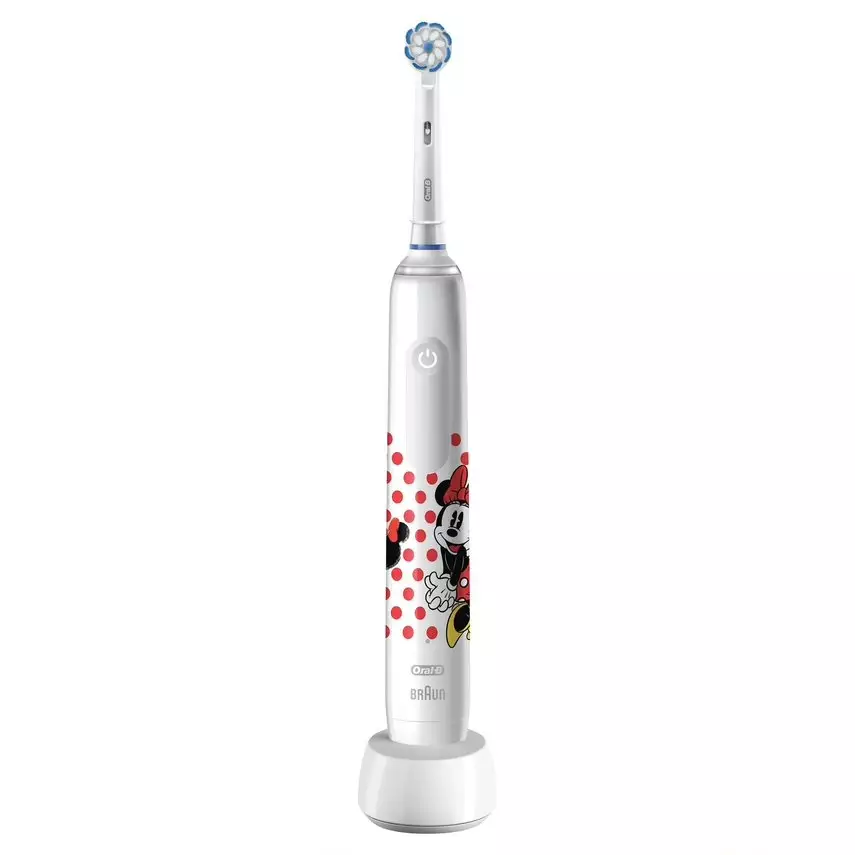 Yli 6-vuotiaille tarkoitettu Oral-B Junior Minnie -sähköhammasharja on suunniteltu yhteistyössä hammaslääkäreiden kanssa ja tarjoaa erinomaisen puhdistuksen. Lasten herkkiä ikeniä suojaavan hammasharjan rungossa oleva 360° paineentunnistin vilkkuu punaisena ja hammasharjan liikkeet hidastuvat, jos harjaa painetaan liian voimakkaasti. Pyöreässä harjaspäässä on lisäksi erittäin pehmeät harjakset. Harjaamisesta tulee entistä hauskempaa, kun harjaa käytetään yhdessä maksuttoman Oral-B Disney Magic Timer -sovelluksen kanssa - 90 % lapsista harjaa pidempään sovelluksen avulla. Hammasharja auttaa lapsia harjaamaan itsenäisesti ja saamaan terveet suunhoitotavat koko elämän ajaksi.