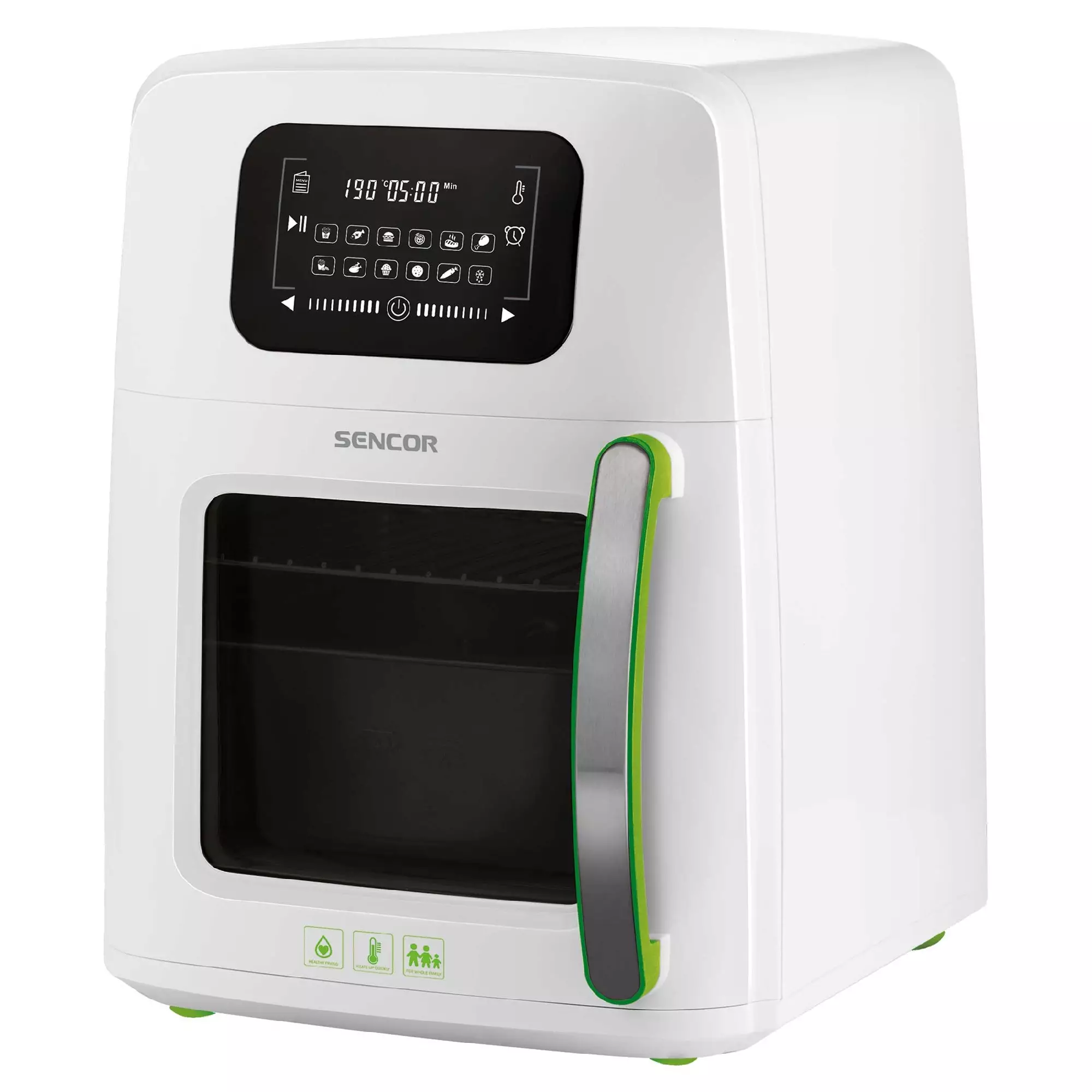 SENCOR SFR5400WH AIRFRYER KEITIN. Nauti rapeita ranskalaisia sekä herkullisia välipaloja tai päivällisiä terveellisesti ja nopeasti. Friteerauskeitin joka toimii kiertoilma tekniikalla kuuman ilman avulla. LED-näyttö, tilavuus 11 litraa, teho 1800W.