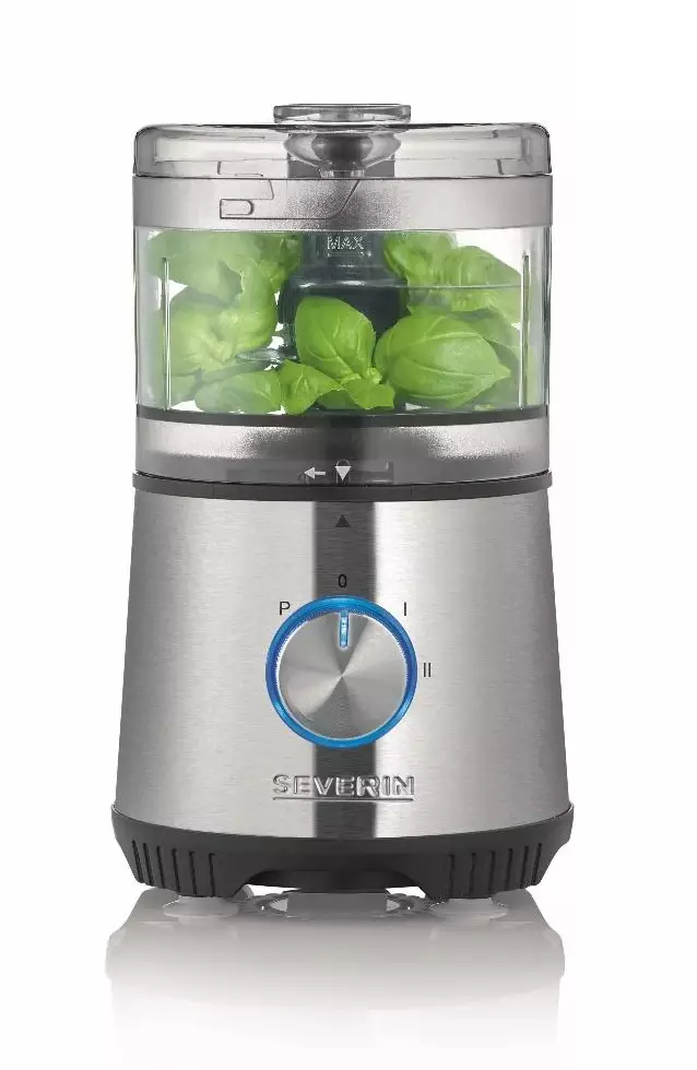 Silppurin 4-haarainen terä pyörii kahdessa tasossa. Mukana käytännöllinen lisävaruste ruoan leikkaamiseen tai raastamiseen