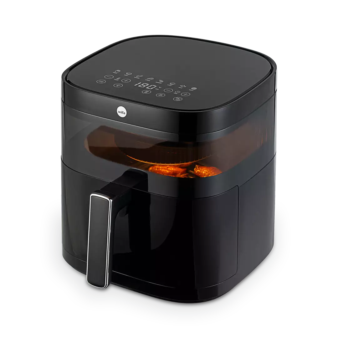 Dualfry 6L kiertoilmakypsentimessä on kaksoislämmityselementti, joka mahdollista entistä tasaisemman ja paremman lopputuloksen. Kuuman, nopeasti sekä tasaisesti laitteessa kiertävän ilman ansiosta pinnasta tulee rapea ja sisuksesta ihanan mehukas. Kätevän ikkunan ansiosta voit seurata ruoan valmistusta ilman luukun avaamista.