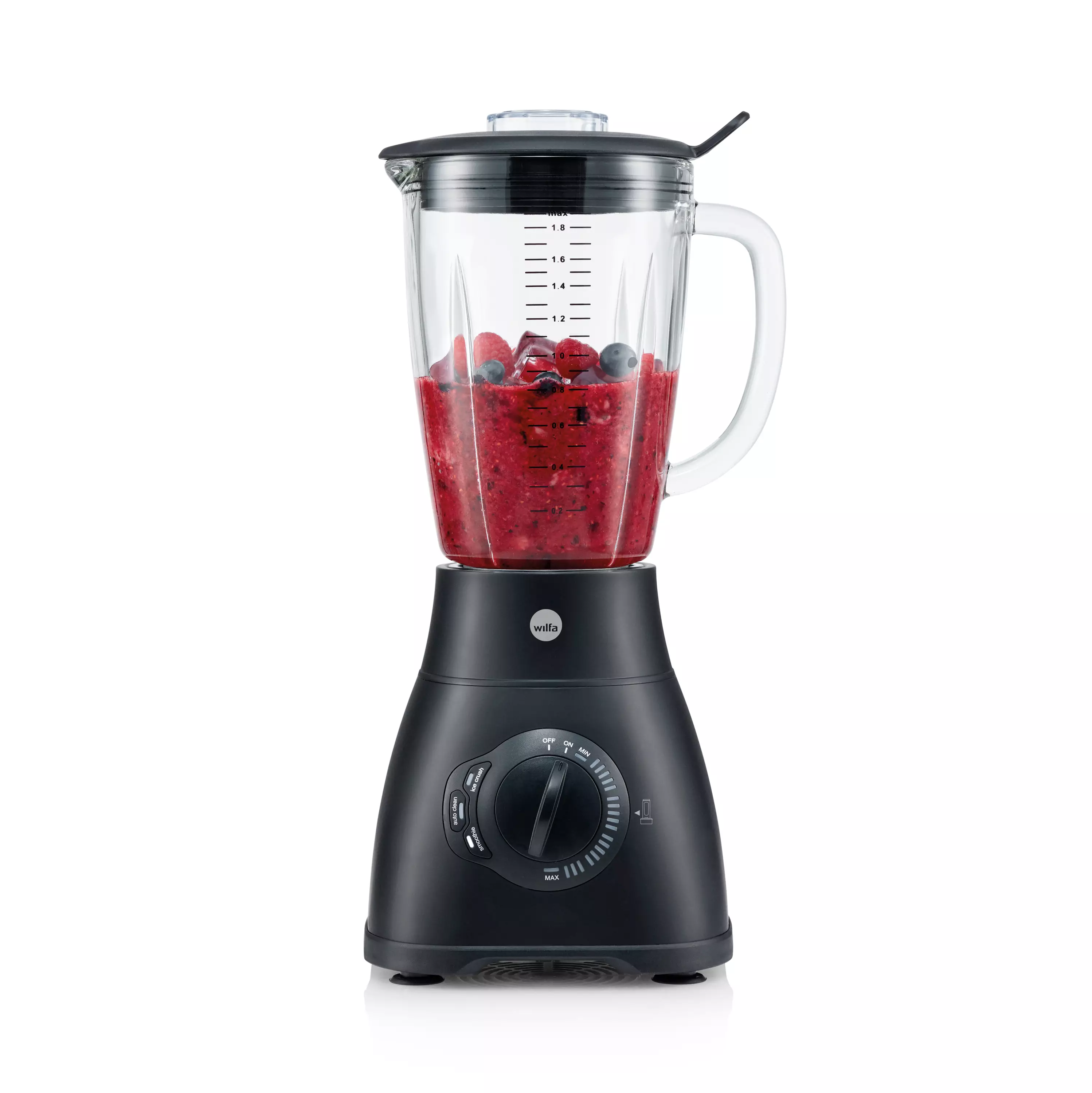 Lasikannun tilavuus on 1,8 litraa. Kannen täyttöaukosta on helppo lisätä aineksia tai nesteitä laitteen ollessa käynnissä. Tähän tehosekoittimeen soveltuu myös 2GO-pullo, joka myydään erikseen.