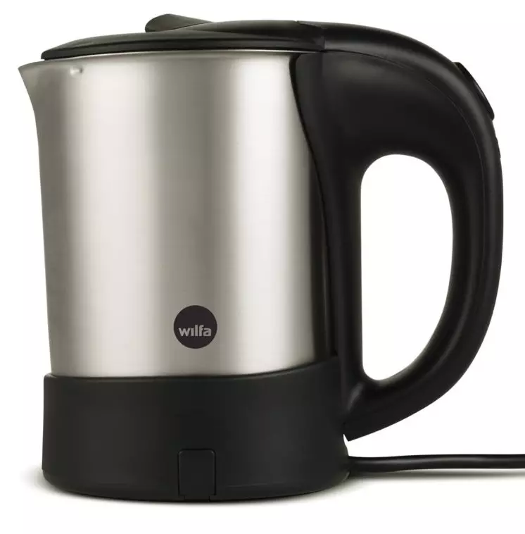 Käytännöllinen pieni matkavedenkeitin korkealaatuisesta ruostumattomasta teräksestä. Teho 1000 wattia ja tilavuus 0,5 litraa.