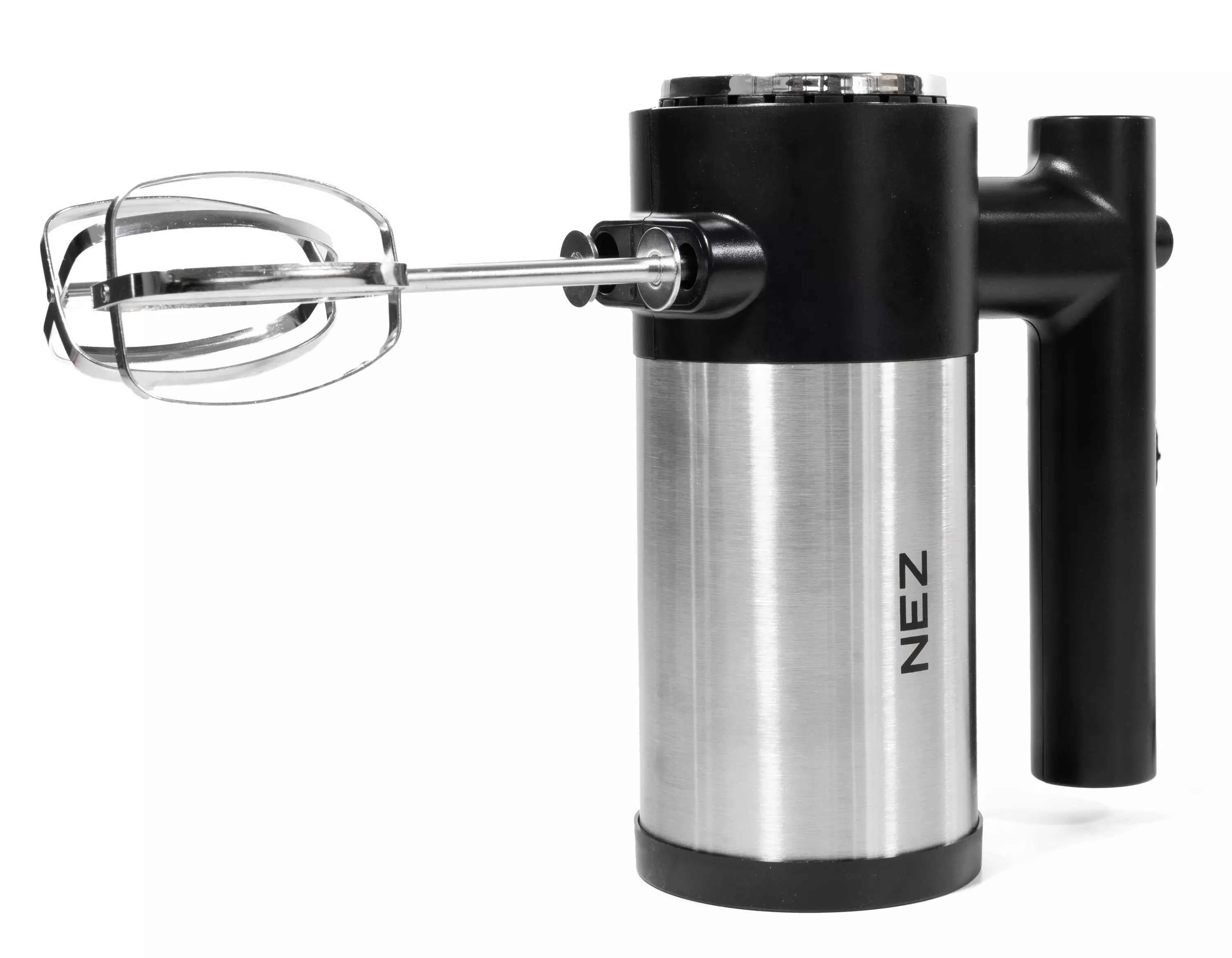 Tyylikäs ja tehokas sähkövatkain, jossa mukana vispilät ja taikinakoukut.