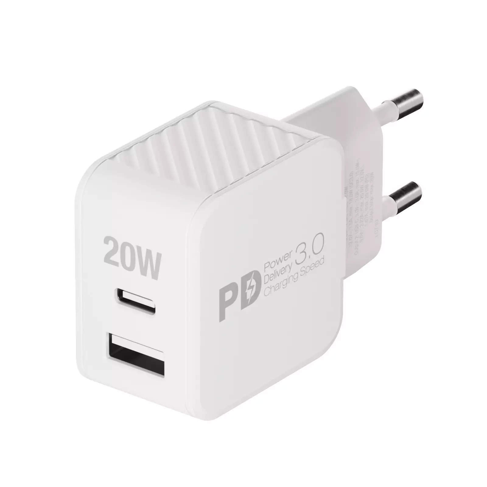 Erittäin nopea 20W Power Delivery (PD) 3.0 -kotilaturi, jossa on USB-Type-C®-lähtö sekä USB-A 2.0 -lähtö. Tämä laturi on optimoitu 20 W:n latausnopeuteen ja tukee myös esim. MagSafe-latausta.