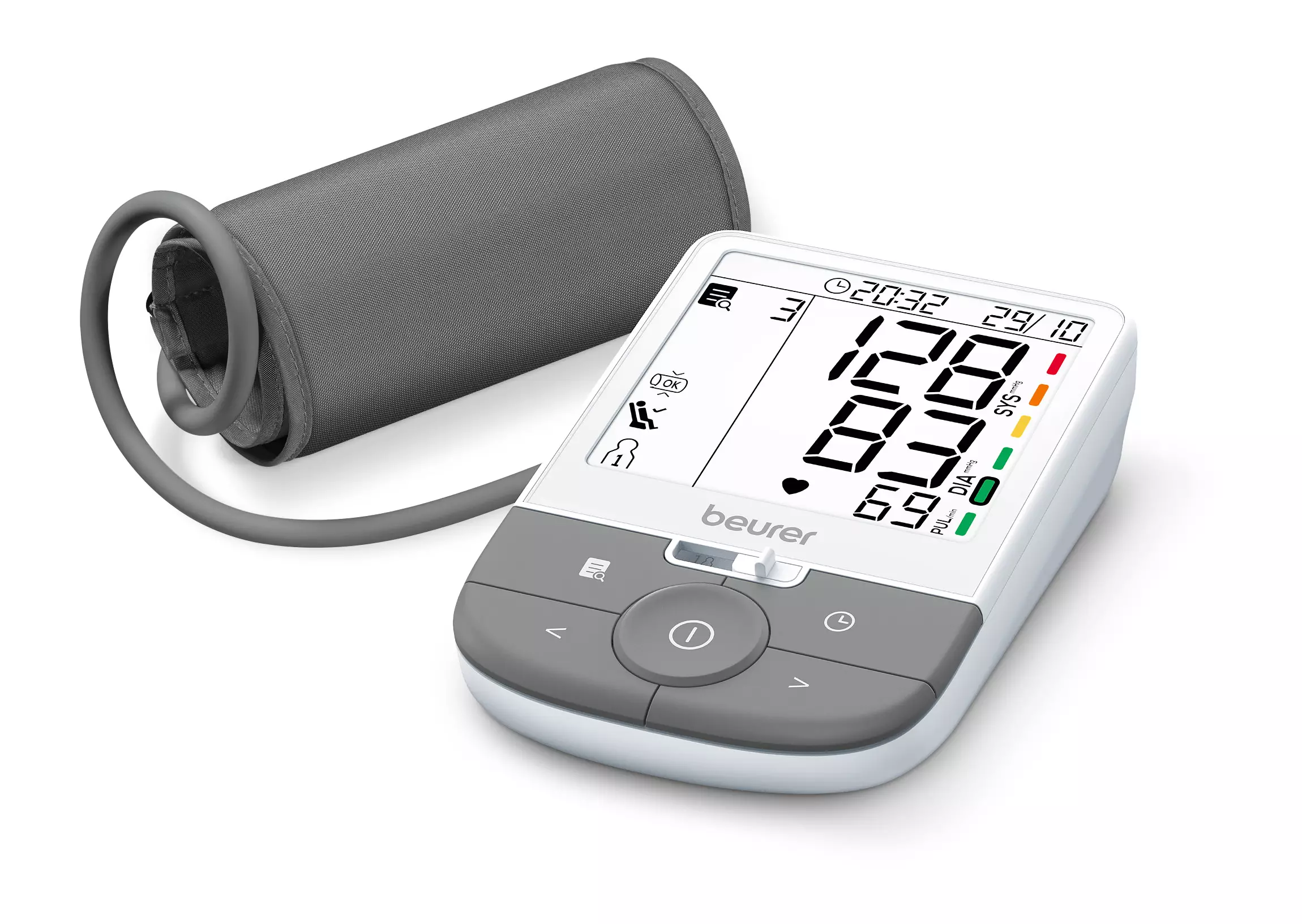 Beurerin BM 53 on täydellinen terveyskumppani verenpaineen ja pulssiarvojen seurantaan kotona. Suuri, selkeä näyttö ja mittausten väriluokitus tekevät arvojen lukemisesta erityisen helppoa. Kehittyneen rytmihäiriötunnistuksen ansiosta laite havaitsee eteisvärinän ja auttaa aivohalvauksen varhaisessa havaitsemisessa.