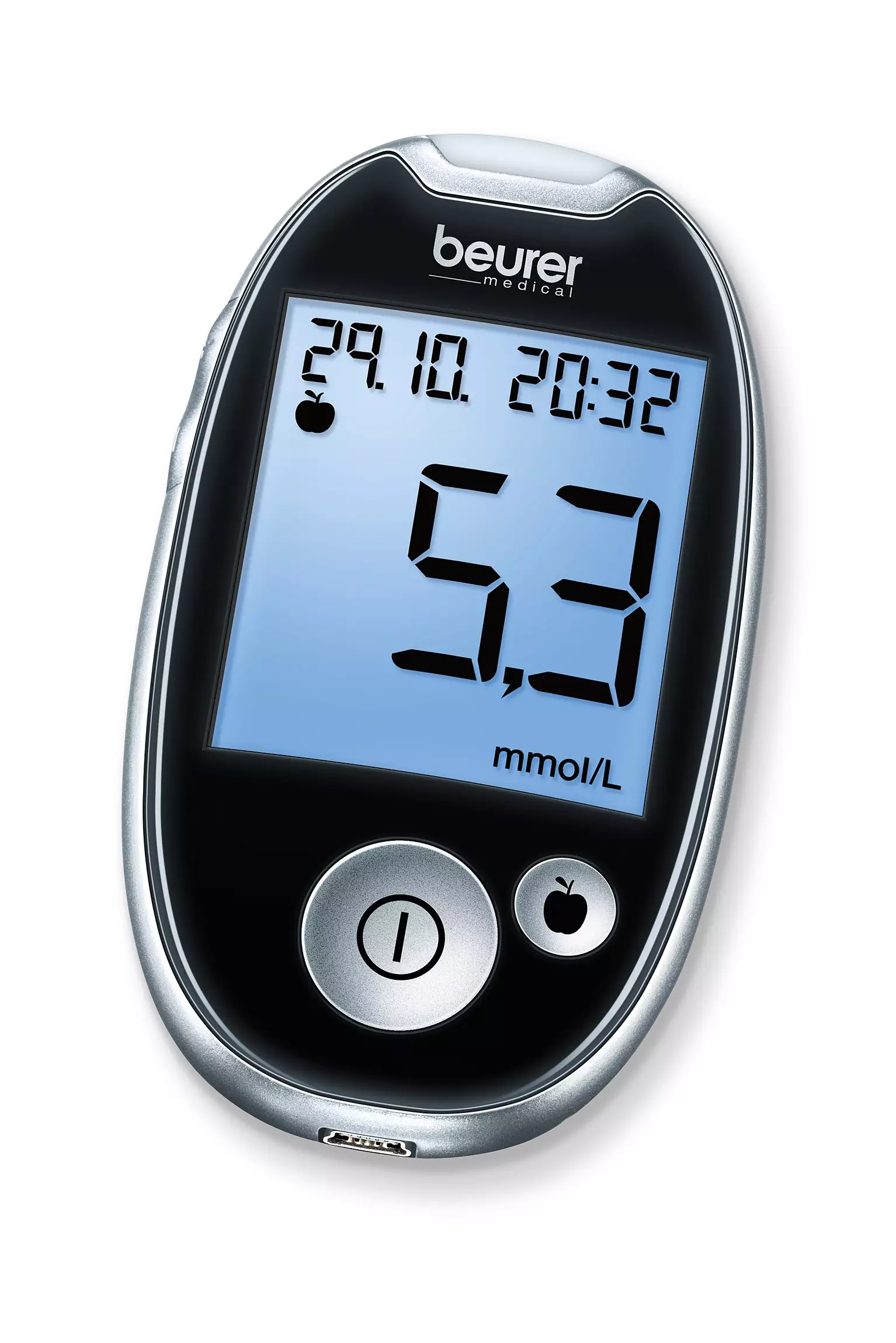 Beurerin GL44 Verensokerimittari on erittäin helppokäyttöinen. Laitteen avulla voit nopeasti ja helposti määrittää veren sokeripitoisuuden, tallentaa mittausarvot ja hakea näytölle mittausarvojen keskiarvon. Näin laite tukee täydellisesti diabeteksen hoitoa.