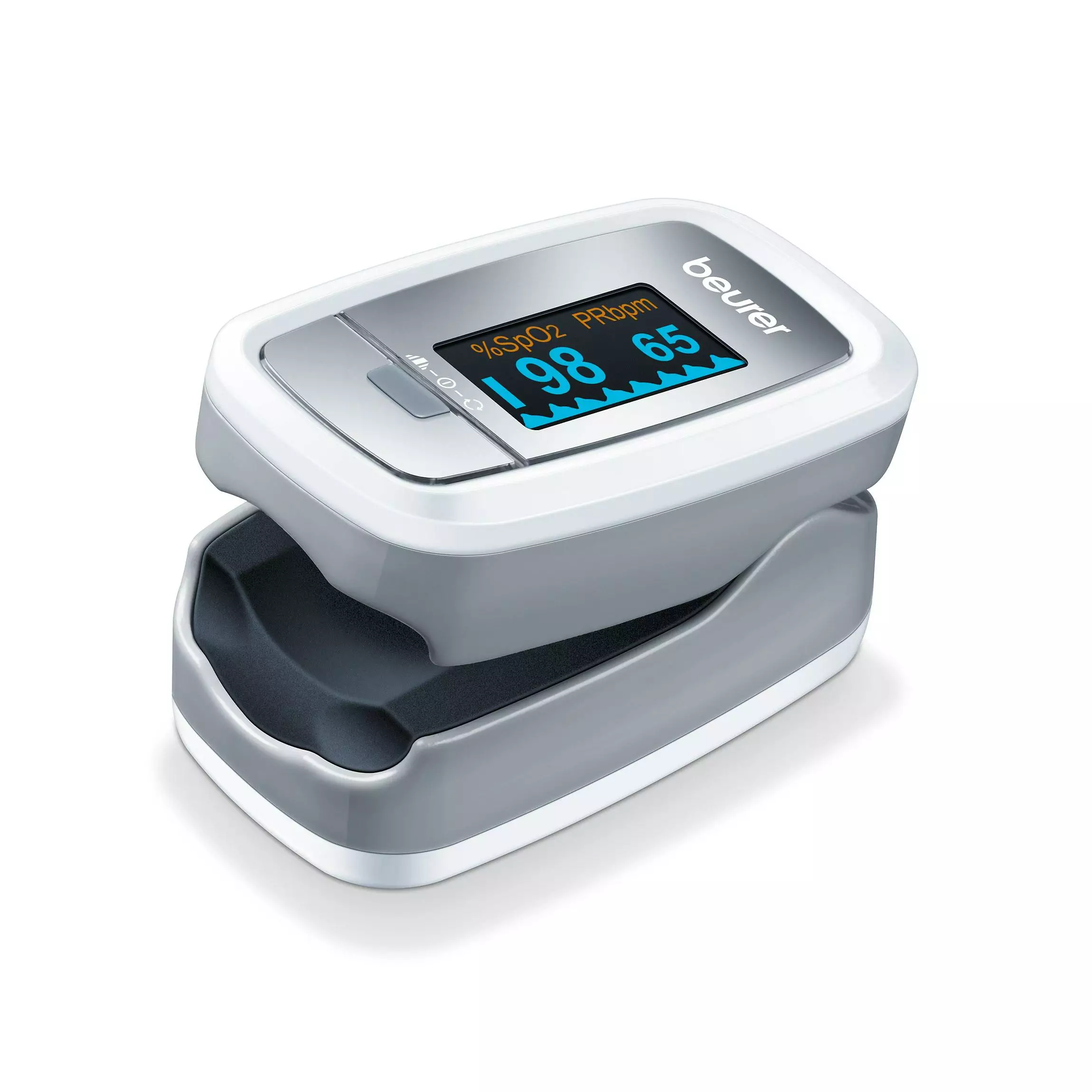Beurerin PO 30 -pulssioksimetrin avulla mittaat vaivattomasti veressä olevan hapen (SpO2) määrän sekä sydämen sykkeen. Happikyllästeisyys kertoo, montako prosenttia valtimoveren hemoglobiinista on sitonut itseensä happea. Se onkin tärkeä parametri hengitystoimintojen arvioinnissa. Happikyllästeisyys pienenee etupäässä erilaisten sairauksien seurauksena (hengitystiesairaudet, astma, sydämen vajaatoiminta ym.). Henkilöillä, joilla on matala happikyllästeisyys, esiintyy usein seuraavia oireita: hengenahdistus, sydämen lyöntitiheyden nousu, suorituskyvyn aleneminen, hermostuneisuus ja hikoilu. Kroonista, todettua matalaa happikyllästeisyyttä on syytä seurata itse pulssioksimetrillä lääkärin ohjeiden mukaisesti. Pulssioksimetri soveltuu siis erityisesti riskiryhmiin kuuluville henkilöille, kuten sydänsairautta poteville tai astmaatikoille, mutta myös urheilijoille ja terveille henkilöille, jotka harrastavat liikuntaa suurissa korkeuksissa (esim.vuorikiipeilijät, laskettelijat tai urheilulentäjät).