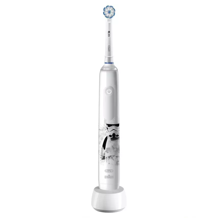 Yli 6-vuotiaille tarkoitettu Oral-B Junior Star Wars -sähköhammasharja on suunniteltu yhteistyössä hammaslääkäreiden kanssa ja tarjoaa erinomaisen puhdistuksen. Lasten herkkiä ikeniä suojaavan hammasharjan rungossa oleva 360° paineentunnistin vilkkuu punaisena ja hammasharjan liikkeet hidastuvat, jos harjaa painetaan liian voimakkaasti. Pyöreässä harjaspäässä on lisäksi erittäin pehmeät harjakset. Harjaamisesta tulee entistä hauskempaa, kun harjaa käytetään yhdessä maksuttoman Oral-B Disney Magic Timer -sovelluksen kanssa - 90 % lapsista harjaa pidempään sovelluksen avulla. Hammasharja auttaa lapsia harjaamaan itsenäisesti ja saamaan terveet suunhoitotavat koko elämän ajaksi.