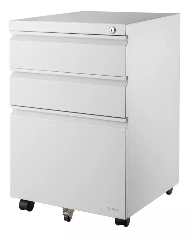 Deltaco OFFICE pyörällinen laatikosto ei ainoastaan tarjoa toimivaa säilytystilaa, vaan se tuo myös tyylikkyyttä työpisteelle. Sen valkoinen väri sopii helposti monenlaisiin toimistotiloihin. Olitpa sitten tekemässä tärkeitä asiakirjoja tai säilyttämässä päivittäisiä toimistotarvikkeita, tämä laatikosto pitää kaiken järjestyksessä ja turvassa.
