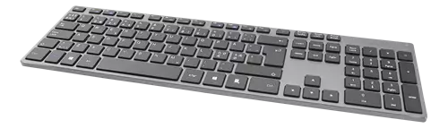 Langaton näppäimistö, USB-vastaanotin, kiinteä akku, lataustason ilmaisin, pohjoismainen asettelu, tummanharmaa