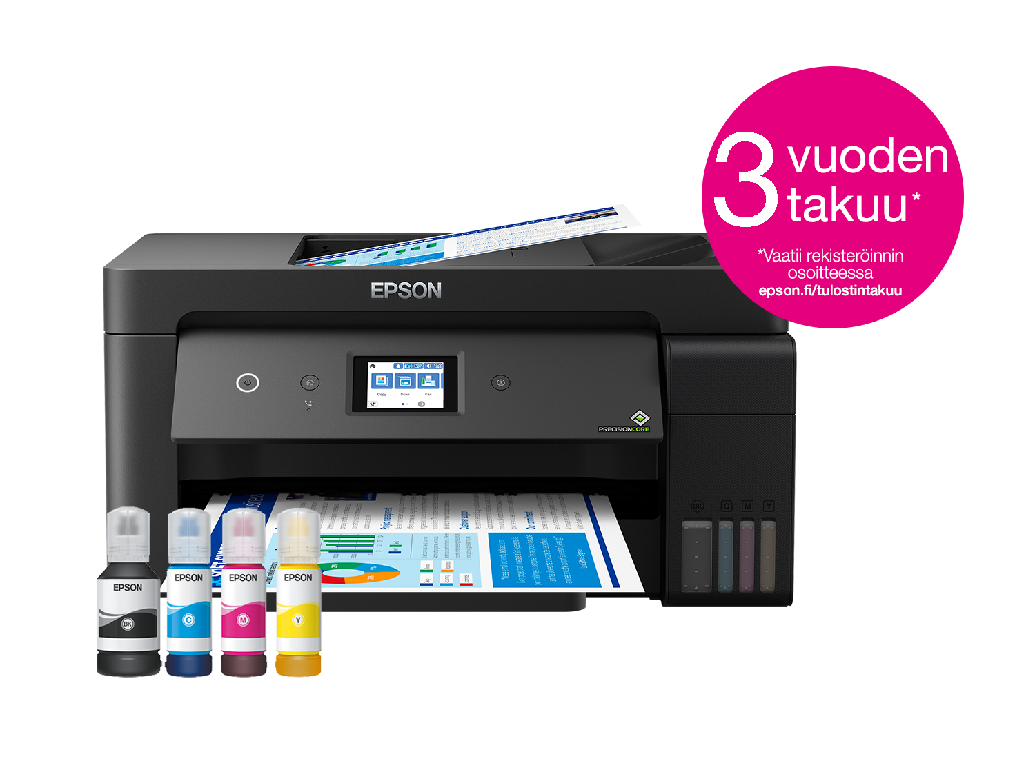 Tämän tuotteen takuun voi laajentaa kolmeen vuoteen sekä yritys- että kotikäytössä, kun rekisteröit laitteesi osoitteessa www.epson.fi/tulostintakuu. Kampanja on voimassa 31.3.2026 saakka. Katso kampanjaehdot TÄSTÄ