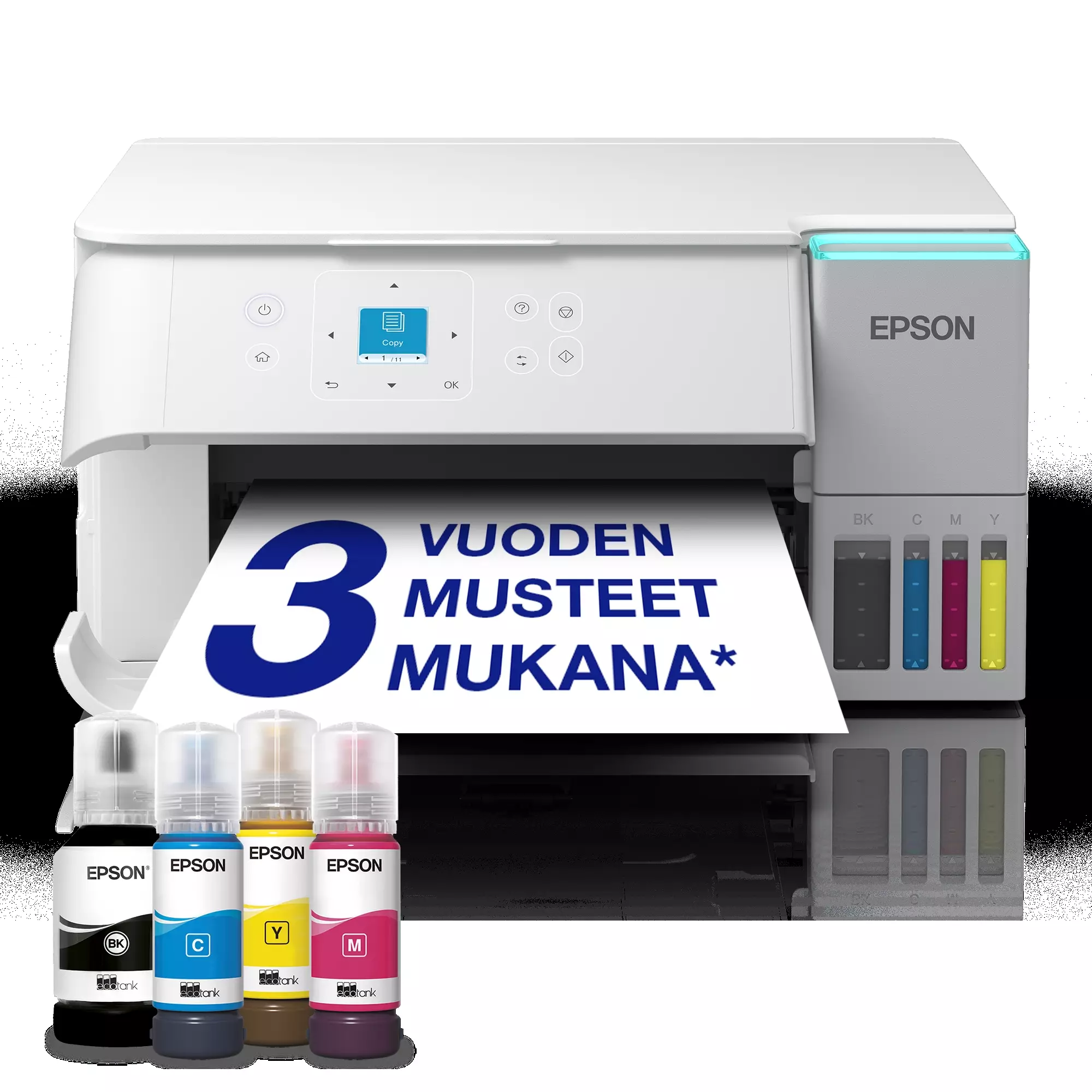 Epson EcoTank ET-2956 tekee tulostamisesta helpompaa, edullisempaa ja kestävämpää kuin koskaan ennen. Tämä kompakti A4-monitoimilaite tarjoaa laadukkaan tulostuksen, skannauksen ja kopioinnin ilman perinteisiä mustekasetteja. Uudelleentäytettävien mustesäiliöiden ansiosta voit sanoa hyvästit yllättäville kuluille ja nauttia jopa 95 % alhaisemmista tulostuskustannuksista*.