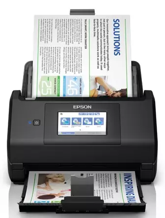 Skannerin ominaisuudet: Ultrasonic Double Feed Detection, Paper Protection Function, tyhjän sivun ohitus, Auto Crop, Remove Background, vinokorjaus, OCR Text Recognition, Wi-Fi Direct, 4,3 tuuman LCD-kosketusnäyttö