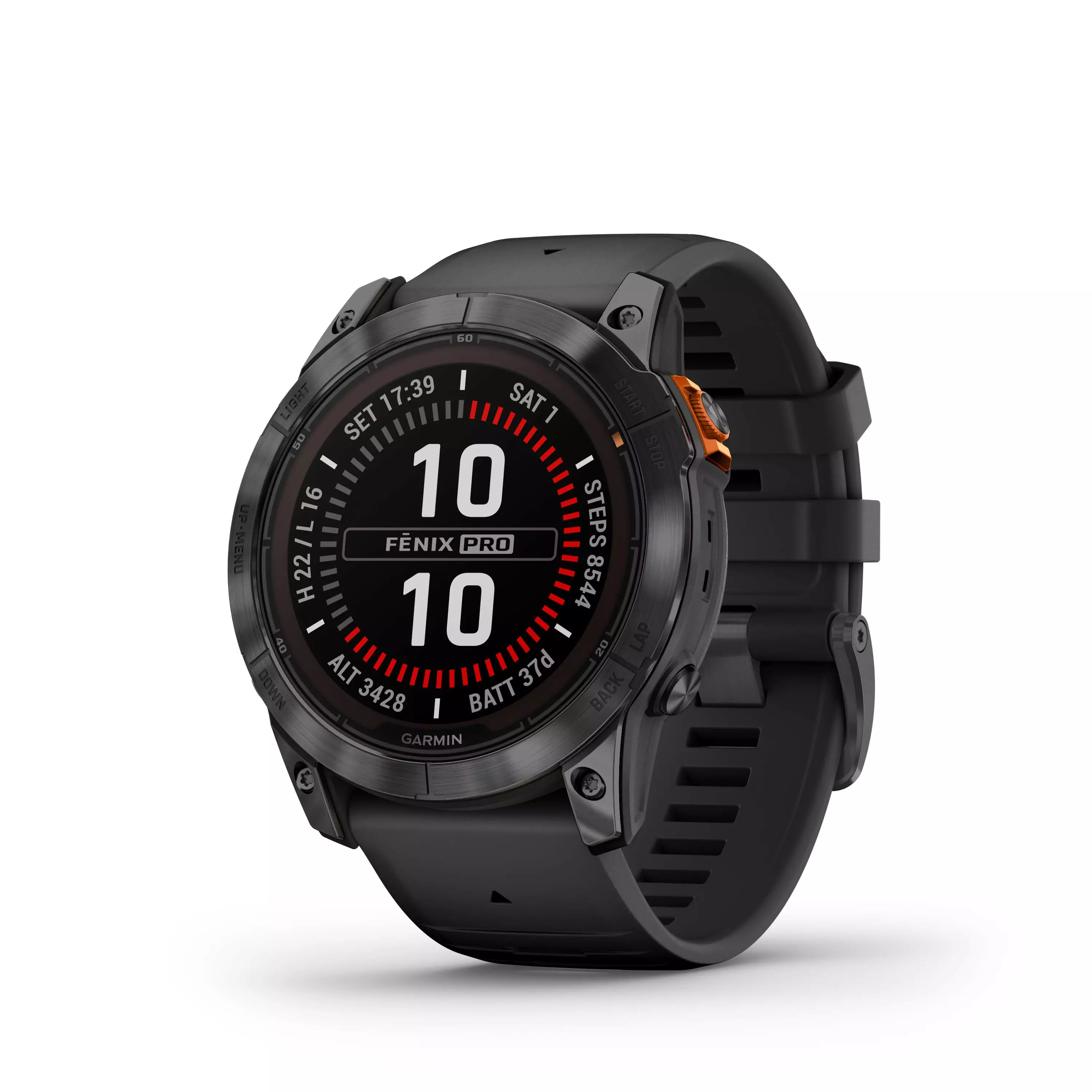 • GPS-monilajikello, jossa on suuri näyttö ja kestävä 51 mm:n kuituvahvisteinen polymeerikotelo, jossa on teräksinen kehys ja takakansi